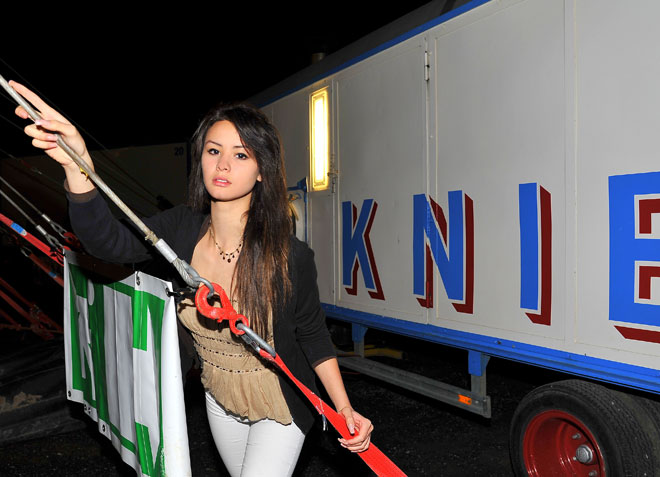 Auf dem Weg ins Showzelt geht es an vielen Zirkuswagen vorbei. Diese - es sind über 100 an der Zahl - rollen jedes Jahr quer durch die ganze Schweiz, wo der National Zirkus an 43 Orten seine Vorstellungen vor grossem Publikum präsentiert. Knie beschäftigt über 200 Mitarbeiter, Künstler und Musiker aus 16 Nationen der ganzen Welt. Übrigens, Charlys Schwester Cecilia arbeitete Ende der Siebziger Jahre für Fredy & Marie-Jose Knie.